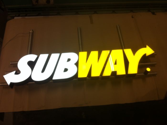 Made from a flat sheet of aluminum which is machine folded to make the sign ridged and to create some depth to the sign. The sign tray is then sign written with flat cut acrylic letters or shapes to make up the logo. The acrylic letters can either be fixed flush to the fascia panel so that it creates a slightly raised effect or they can be fitted to raised brackets to create more of a three dimensional effect. With a range of acrylic color’s to choose from, the possibilities are endless and we can also combine acrylic letters with vinyl decals so parts of the sign are raised and other parts are flush.